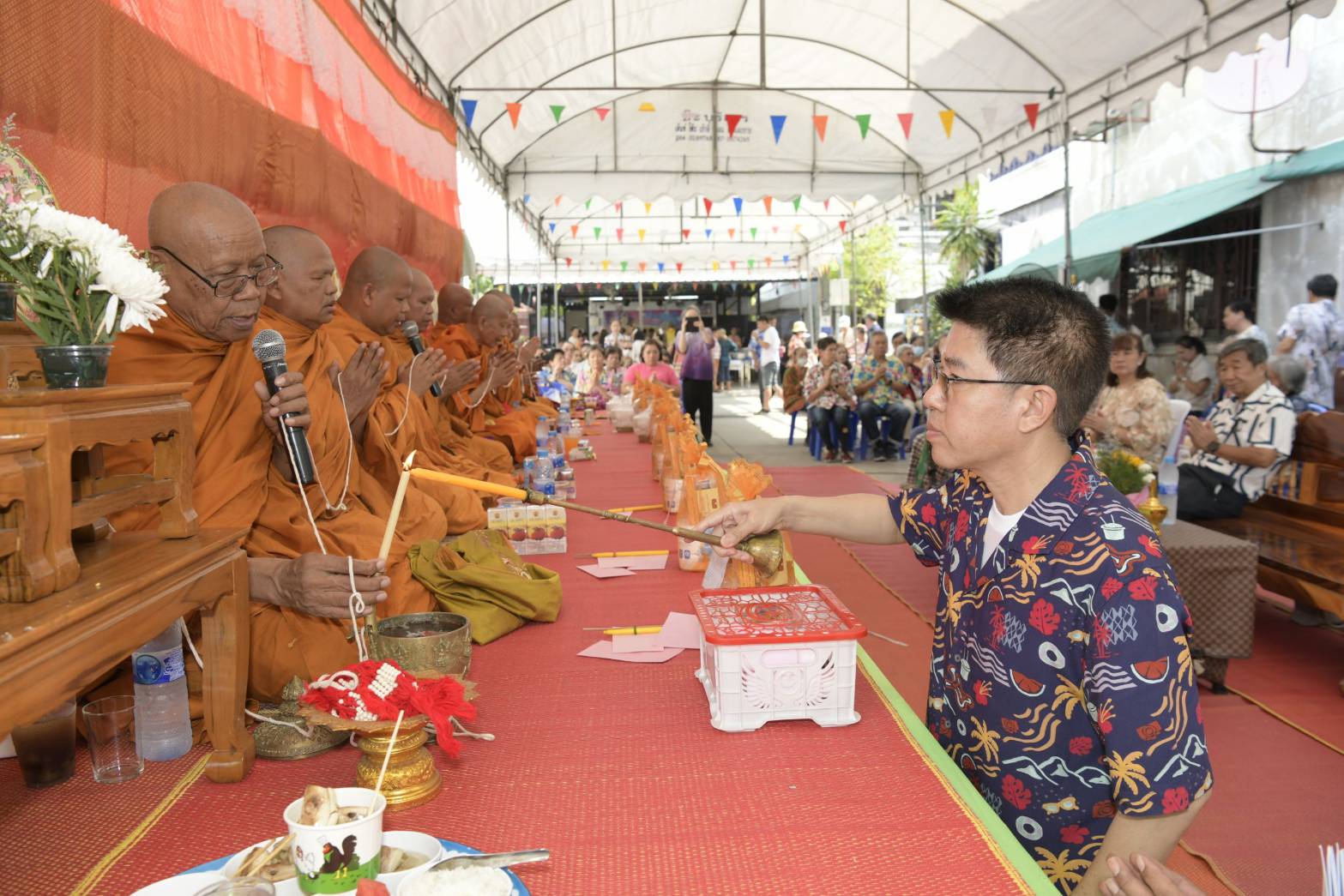 นนทบุรี-ชาวบางกรวยร่วมสืบสานประเพณีไทย ชุมชนหมู่บ้านธนากร 2 จัดงานทำบุญสรงน้ำพระและรดน้ำดำหัวผู้สูงอายุ รับสิริมงคลต้อนรับเทศกาลสงกรานต์ 2569วันนี้ 4 เมษายน 2569 เวลา 10.00 น. ณ ชุมชนหมู่บ้านธนากร 2 ตำบลวัดชลอ อำเภอบางกรวย จังหวัดนนทบุรี ว่าที่ร้อยตรี ยุทธภูมิ จับจิตต์ นายอำเภอบางกรวย ให้เกียรติเป็นประธานในพิธีทำบุญสรงน้ำพระและรดน้ำดำหัวขอพรผู้สูงอายุ ประจำปี 2569